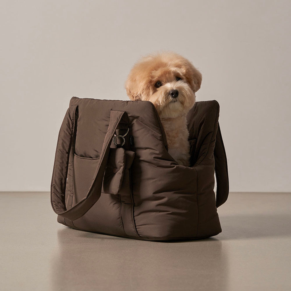 The Cloud Carry Bag is a cushioned carrier that gently wraps around the body, creating a cozy and secure space for your dog.