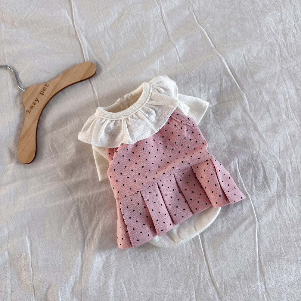 A cute cropped bustier dress that can be styled in multiple ways. Layer it over a T-shirt during the transitional seasons, or wear it alone as a lightweight summer dress. The playful dot pattern adds an extra touch of charm to your pup’s look.
