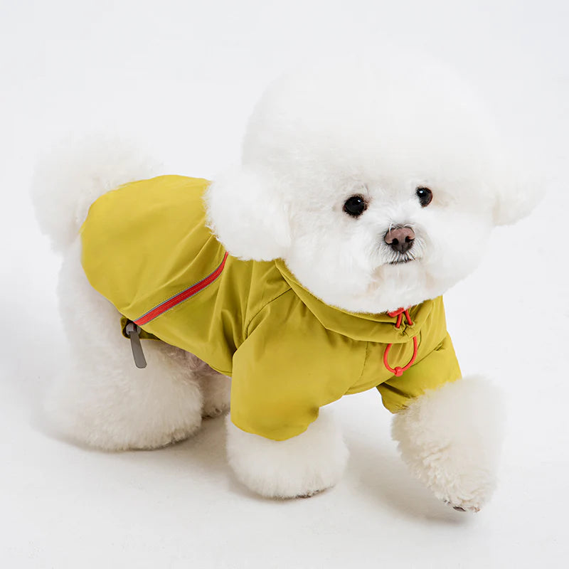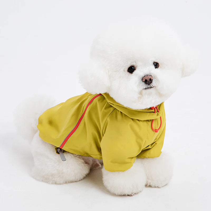 Finding a dog jacket that's practical for unpredictable weather, comfortable for the dog, and easy for the owner to carry is a real challenge. Bulky coats are a hassle to bring along, many aren't truly water-repellent, and noisy, crinkly fabrics can make sensitive dogs anxious. Plus, getting a coat on and off a wriggly pup can feel like a daily workout.