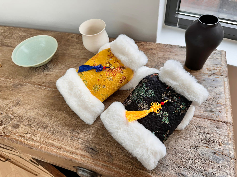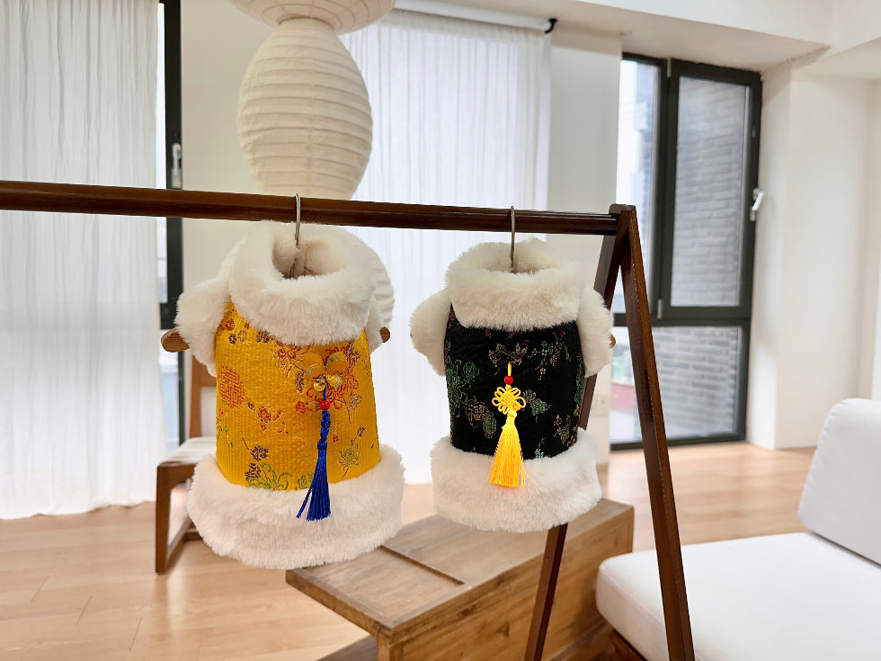 A premium hanbok vest designed with a cozy quilted base, finished with soft angora and fur details for an elevated, luxurious look.
